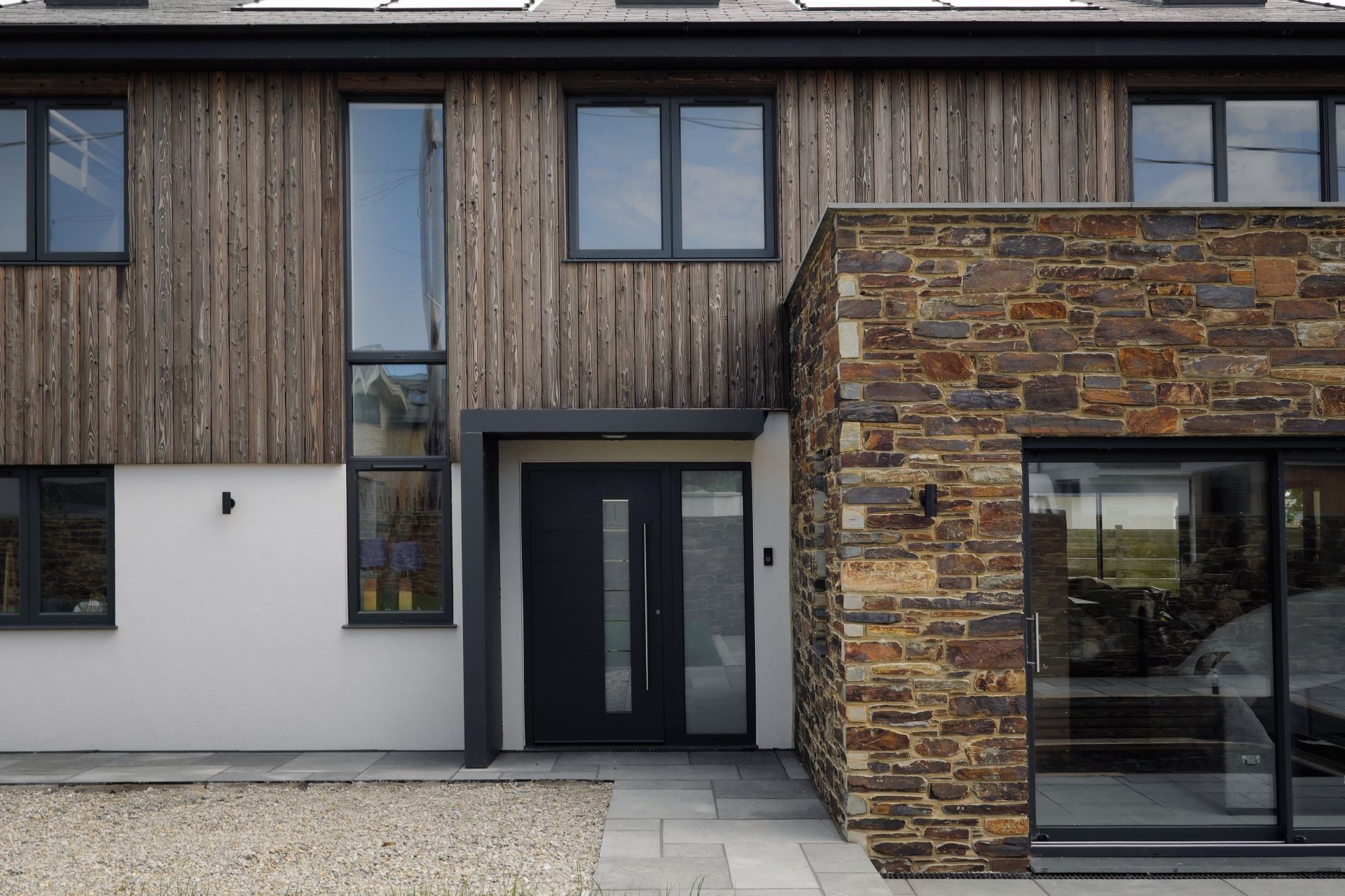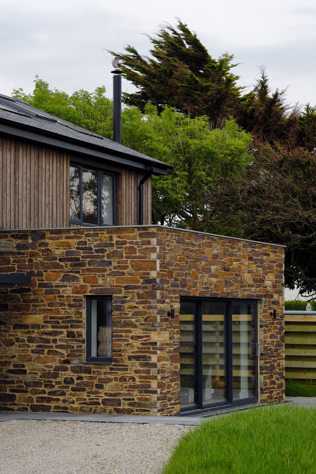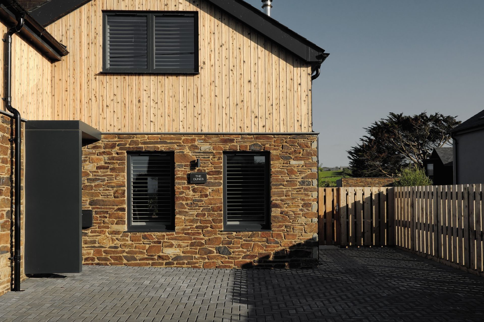 An Cornwalls Nordküste, wo Schieferklippen in türkisfarbene Buchten auslaufen und das Wetter sich im Handumdrehen wandelt, nimmt dieses Projekt seine Impulse aus Land und Meer. Die Architektur wirkt ruhig und souverän—geerdet durch geschichtetes Mauerwerk aus lokalem Stein und getragen von Holzfassaden, ausgeführt mit den Oberflächen Gendai und Pika-Pika von Nakamoto Forestry in einer kuratierten Farbpalette. Gemeinsam bilden sie ein Materialduett: die Tiefe und der Schatten verkohlter Zypresse neben der klaren Zeichnung gebürsteter Bretter, jede Oberfläche im Wechselspiel mit dem Cornish Light.