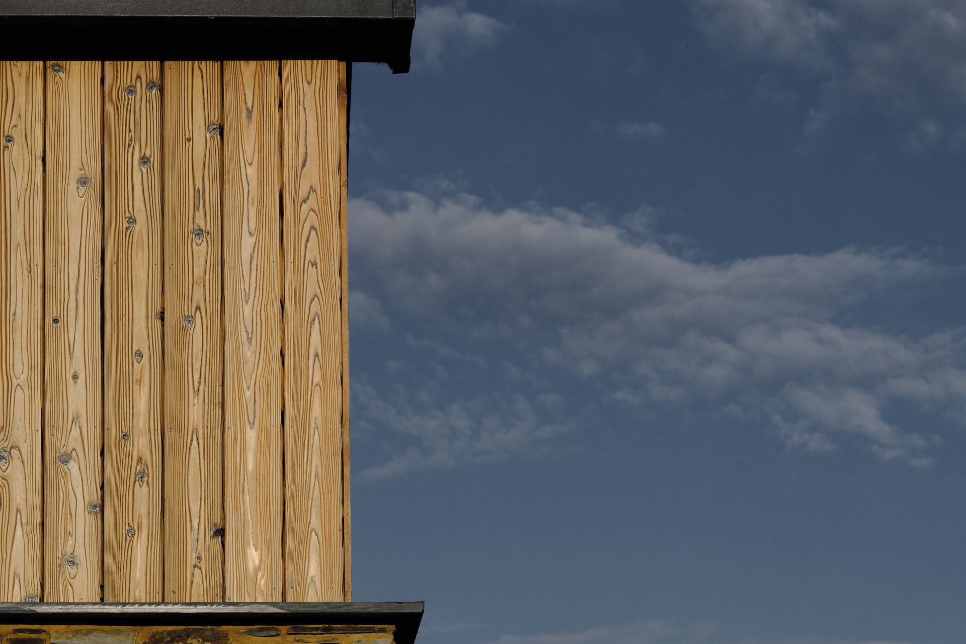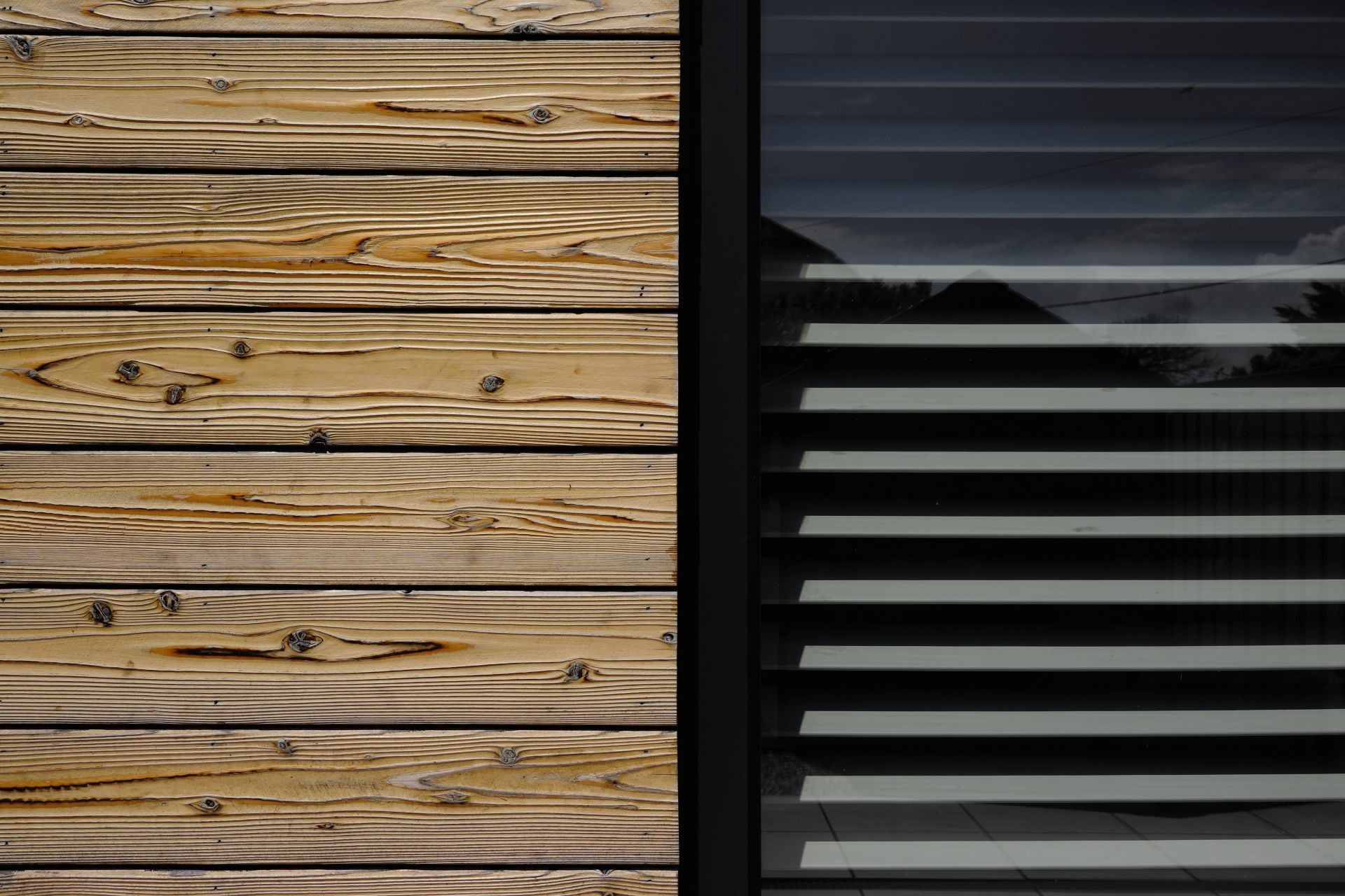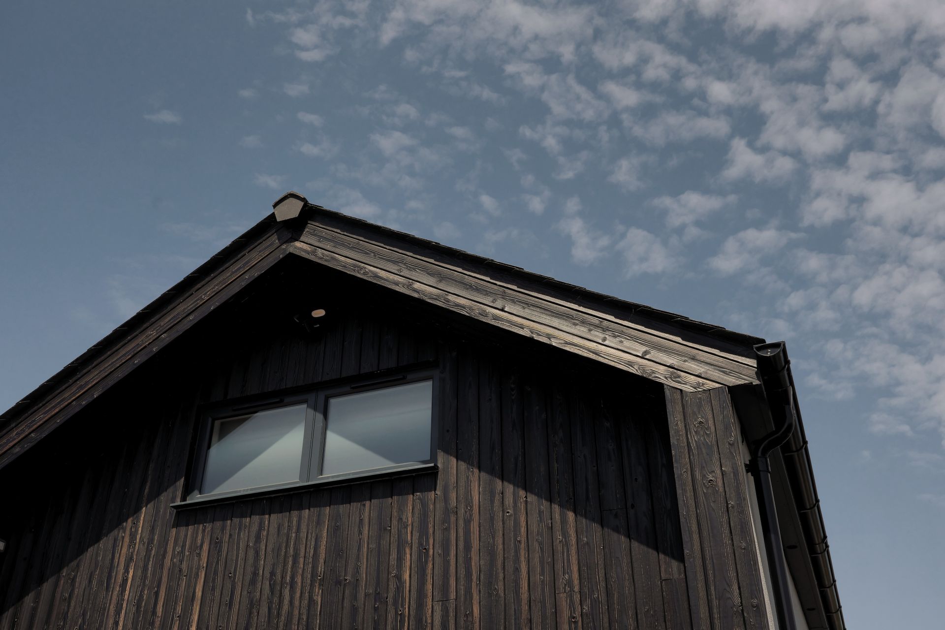 Die Komposition bleibt bewusst schlicht—Satteldachvolumen, großzügige Öffnungen, geschützte Schwellen—damit Handwerk und Texturen sprechen können. Das Steinwerk verankert die Häuser in der regionalen Baukultur, während die Yakisugi-behandelte Schalung zeitgenaue Präzision und eine bewährte Widerstandskraft gegen Salz, Wind und Regen mitbringt. Gendai liefert eine verfeinerte, leicht schimmernde Verkohlung; Pika-Pika legt durch betontes Bürsten eine lebendige, haptische Maserung frei. In mehreren Farbtönen eingesetzt, liest sich das Holz wie eine Familie von Nuancen statt eines einzelnen Tons und gibt den Fassaden und zwischen den Baukörpern Rhythmus.