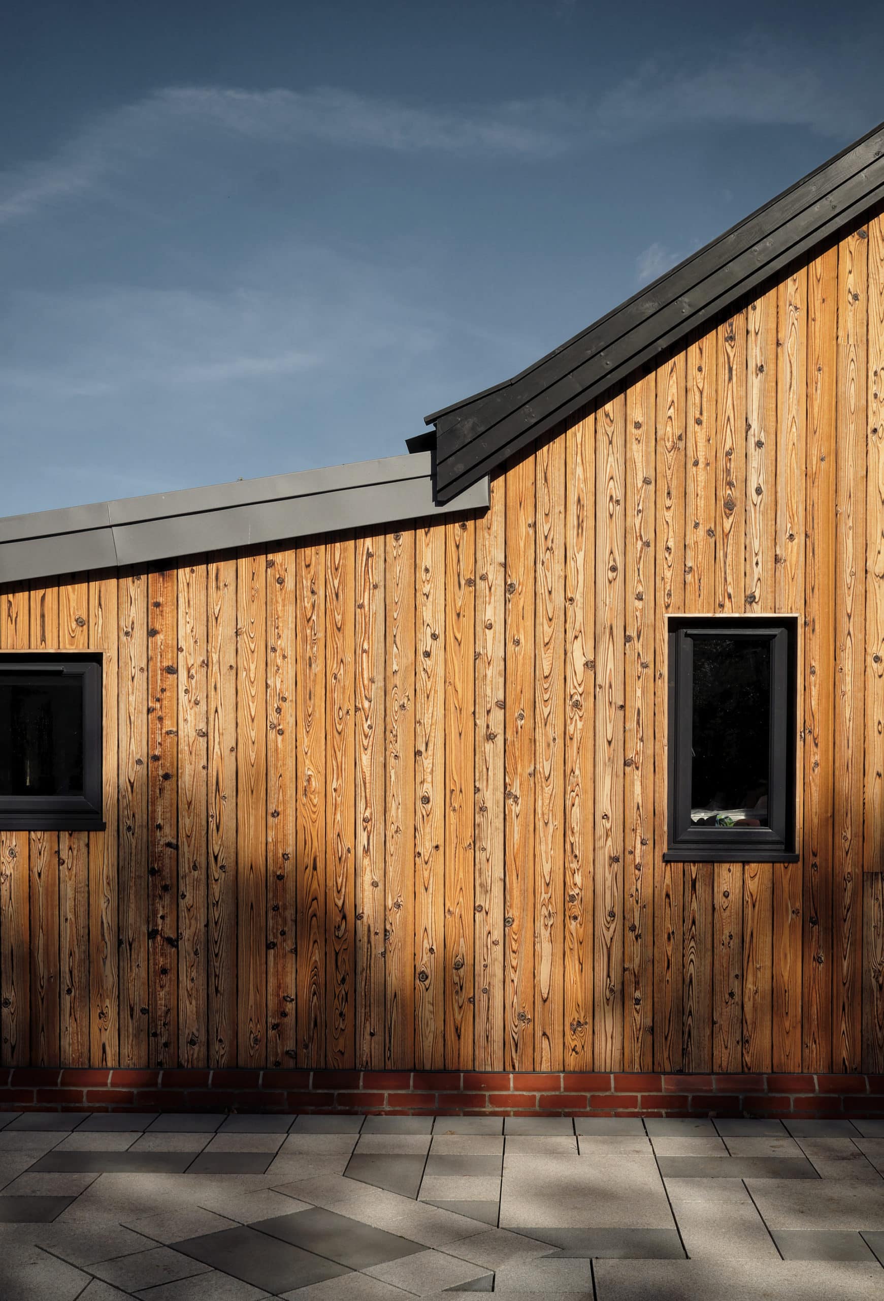 Die Wahl fiel auf unser Pika-Pika Yakisugi mit einem Auftrag natürlichen Holzöls, das sowohl die natürliche Grundfarbe als auch die für Pika-Pika charakteristische kontrastierende Maserung betont.